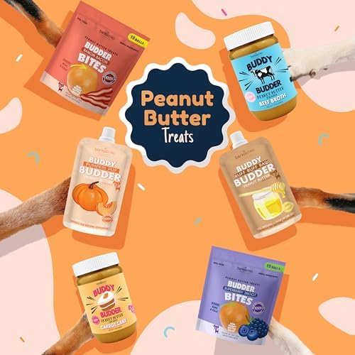BUDDY BUDDER 6 Pack Mixed Flavor Squeeze Packs, 100% Natural Dog Peanut Butter, Healthy Peanut Butter Dog Treats, Made in USA, (4oz Packs)