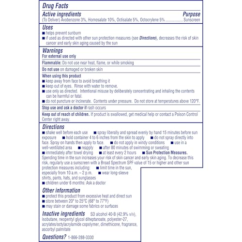 FORMULATED WITHOUT: This spray on sunscreen is free from dyes, PABA, octinoxate and oxybenzone