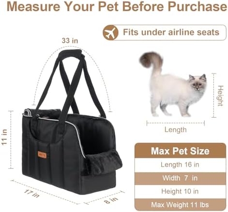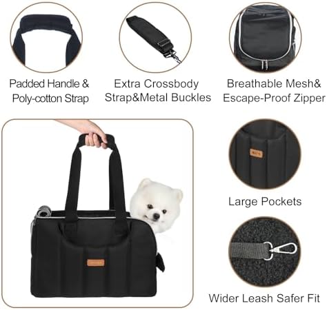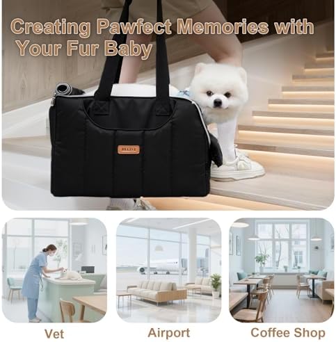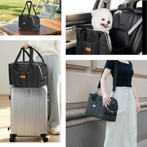 AIRLINE APPROVED & SECURE: The package contains a dog/cat purse bag, a front soft pillow,a hard base insert and a poly-cotton crossbody strap. The dog carrier for small dogs has a wider adjustable safe belt and internal escape-proof zipper keeping your fur baby safe.Soft side design prevents cabin rejection (fits under 90% airline seats).