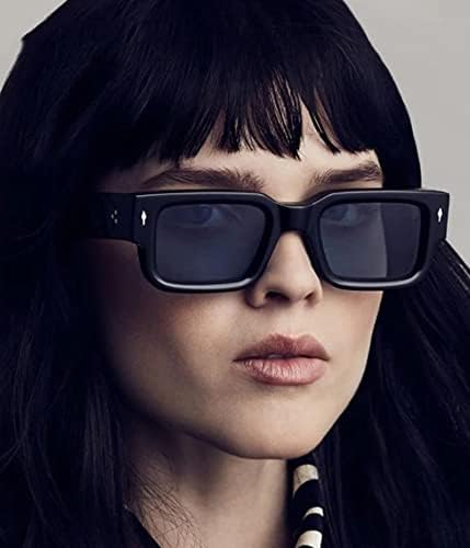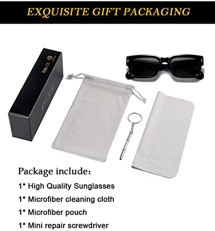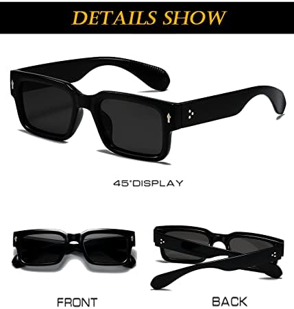 【HIGH QUALITY FRAME DESIGN】This fashionable rectangular sunglasses are made of high-quality acetate fiber and reinforced metal hinges, paired with a popular rivet design. The anti-slip design on the inner end of the mirror legs allows you to easily wear them all day long