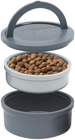 Functional Silicone Lid and Base – Sleek and space-saving, this pet silicone bowl’s lid acts as a food bowl (10oz capacity) while its base acts as a water bowl (20oz capacity). They’re both non-skid, so you don’t have to worry about spilled food and water