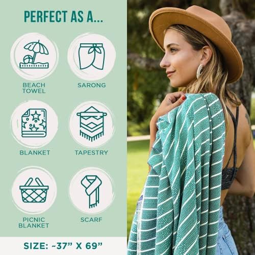 Beyond the Beach: The Sand Cloud Turkish Beach Towel is designed for spreading out on the sand, but its versatility doesn’t stop there! It works great as a yoga mat, cozy throw, picnic blanket, scarf, hair towel, wall hanging, and so much more. 37”x69”. Gocek Mint.