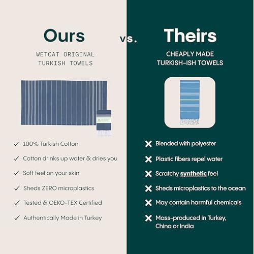 QUALITY YOU CAN FEEL: Who wants a stiff, scratchy Turkish beach towels? At Wetcat, our fabric is prewashed for an unbelievably soft texture. Made in Turkey with OEKO-TEX certified natural dyed yarn, our decorative Turkish towels are safe for you and for the environment.